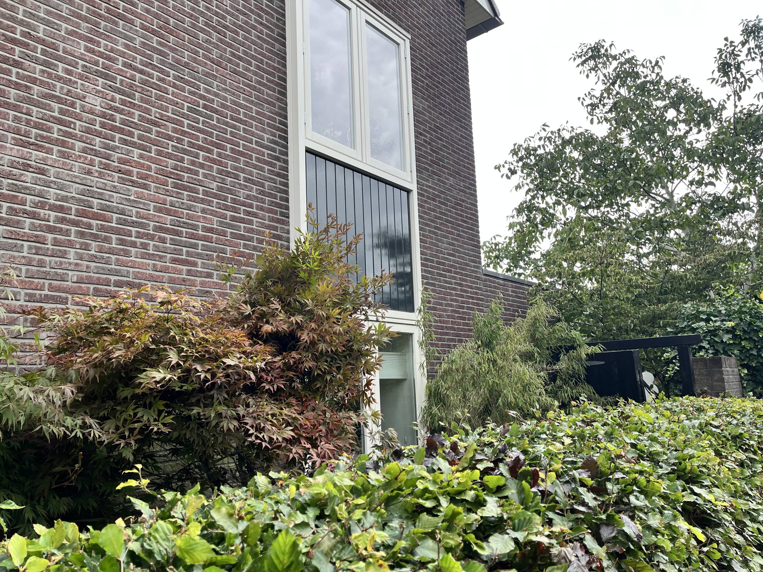 De donkere delen zijn opnieuw geschilderd in RAL 7021 en de lichte delen in de kleur RAL 9001 met een hoogwaardige, weerbestendige afwerking van hoge kwaliteit in dit gevel is er gekozen voor Sigma Allure Glosse. Dit sluit perfect aan bij de stijl en moderne uitstraling van de woning.